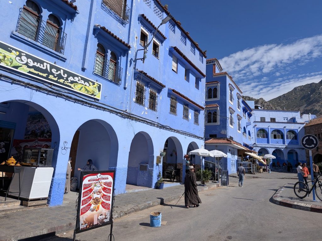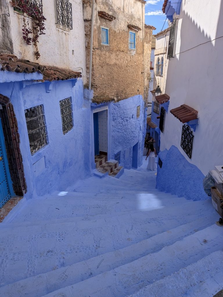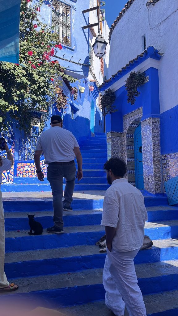 The first stop on my way to the Sahara was the blue town of Chefchaouen. Arriving after an almost two-hour ride through the mountains from Tangier, I could already see the blue houses from a distance. This distinctive azure palette—said to have been introduced by Jewish refugees in the 15th century to mirror the heavens and spiritual life—covers everything from doorways to steps, creating a surreal, dreamlike atmosphere.